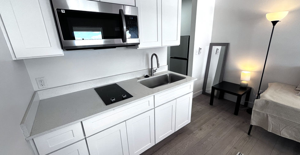 Enjoy updated flooring, contemporary fixtures, and a full bathroom with refreshed finishes. The kitchen includes a compact refrigerator, cooktop, microwave, and sink, providing convenience in a thoughtfully designed space.
